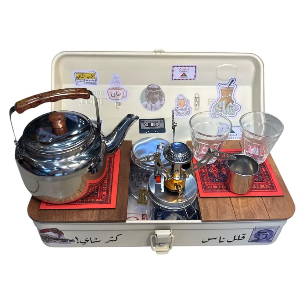 عزبة صندوق شاي حديد بكامل الاغراض مناسب للبر والكشتات