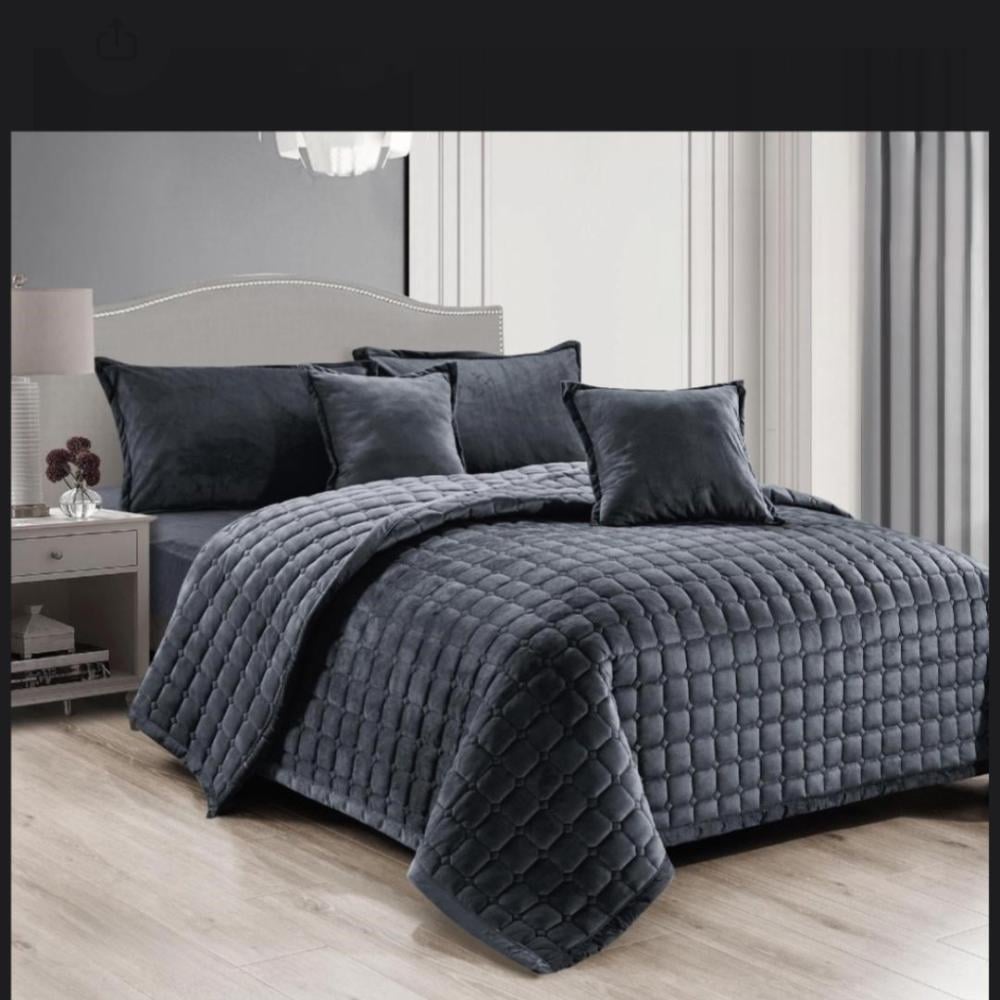 احصلي على لمسة نعومة فاخرة وجودة عالية مع لحاف سرير نفر الذي يأتي بتصميم مضغوط من المخمل ويشمل 4 قطع ليمنحك دفئًا وأناقة في كل ليلة.